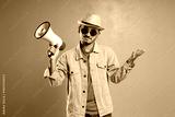 young dumb man With a confused and thoughtful look, looking sideways, thinking and wondering
