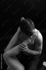 Sensual touches between a man and a woman, a beautiful fashion portrait of a couple, body details with a slight element of eroticism. A place for text and a blurred fleur of love