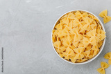Farfalle Pasta. Uncooked pasta shapes. Raw organic Italian farfalle pasta in bowl