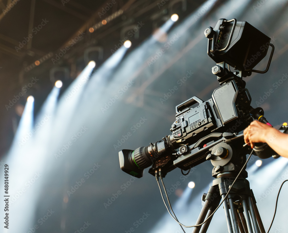 Professional broadcast digital video camera on stage.
