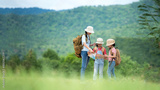 Group family children travel on car for adventure nature in vacations. Asia people tourism checking map for explore natural destination and leisure trips travel for education. Travel Concept