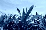 Green corn field on summer season against blue sky on a sunny day. Zea mays or corn cultivation