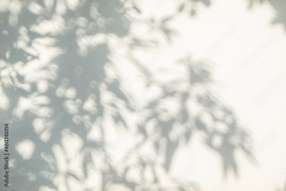 Shadow and sunshine of leaves reflection. Jungle gray darkness shade and lighting on concrete wall, shadows overlay effect, mockup and design