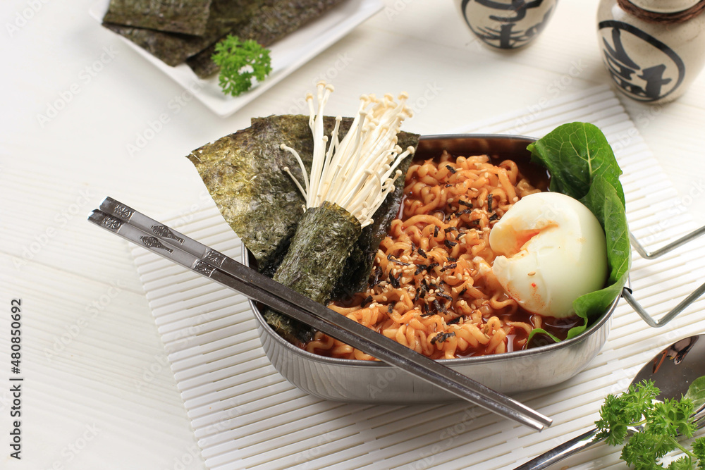 Korean Spicy Instant Ramyeon with Laver Nori and Sesame Seed