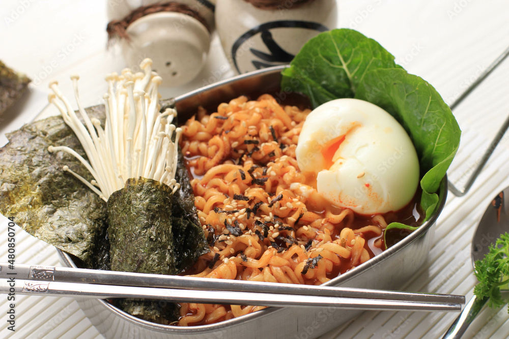 Korean Spicy Instant Ramyeon with Laver Nori and Sesame Seed