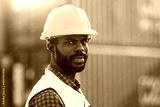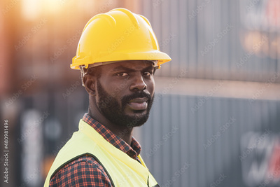 African American worker working in Import-export cargo yard, large-scale transportation via barges