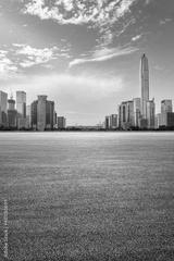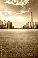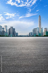 Asphalt road and city skyline with modern commercial office buildings in Shenzhen, China.