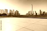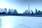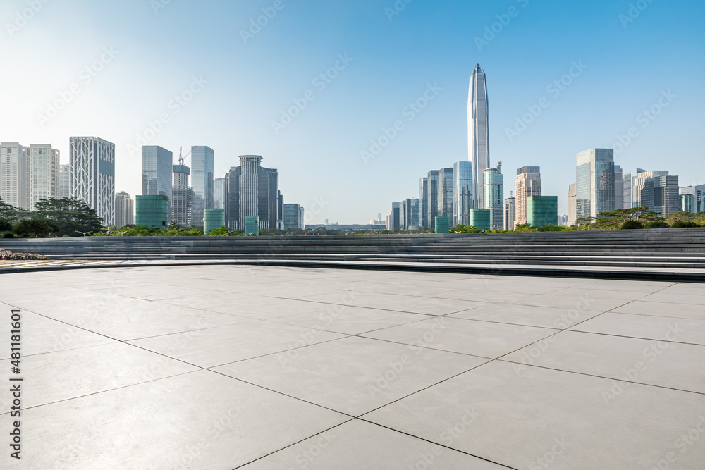 Panoramic skyline and modern commercial office buildings with empty road at Shenzhen, China. empty square floors and cityscape.