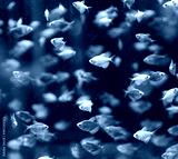 Aquarium with different colored glofish. Gymnocorymbus ternetzi.