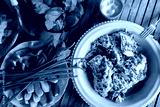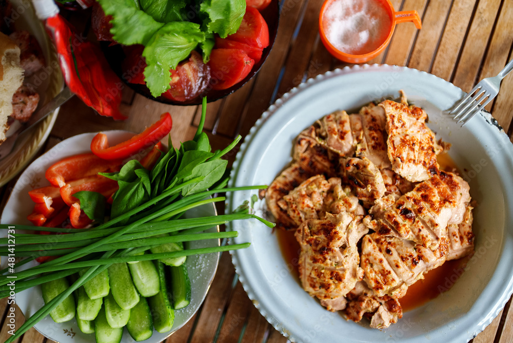 Shashlik from chicken and fresh vegetables.