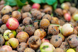 Close-up view of bunch of rotten apples.