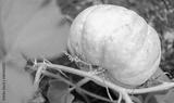 Yellow pumpkin plant on the garden bed.