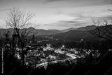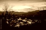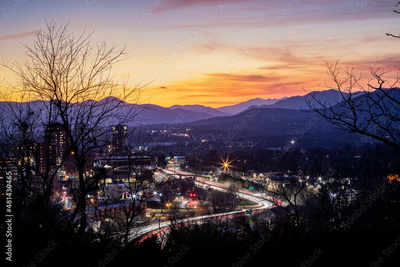 Downtown Asheville at dusk and with a beautiful sunset in winter