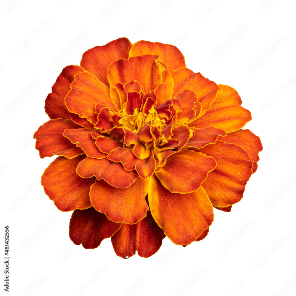 Red orange marigold flower isolated on white background.