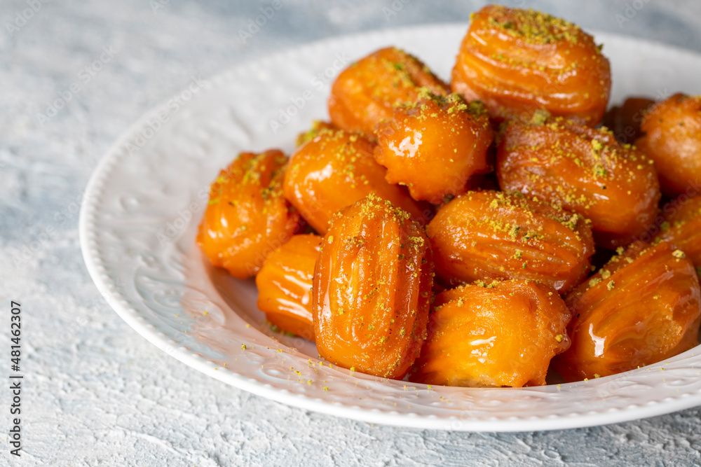 Traditional Turkish Desserts Tulumba (Turkish name; Tulumba Tatlisi)