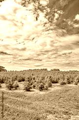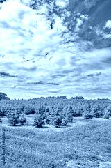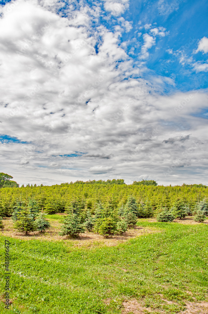Christmas trees in the summertime field.