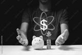 piggy bank saving money concept. with a coin and a dollar symbol between two hands
