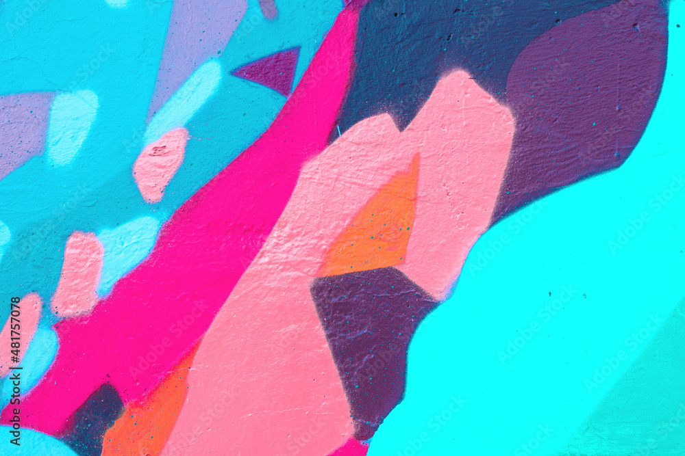 Closeup of colorful teal, pink and purple urban wall texture. Modern pattern for wallpaper design. Creative modern urban city background for advertising mockups. Minimal geometric style, solid colors