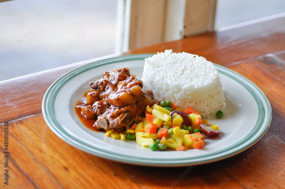 stewed pork ,pork with rice and sauce or rice with stew pork