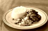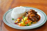 stewed pork ,pork with rice and sauce or rice with stew pork