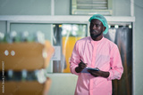 African American man worker work in Warehouse beverage checking products quality halal food standard, African American man worker Import export cargo