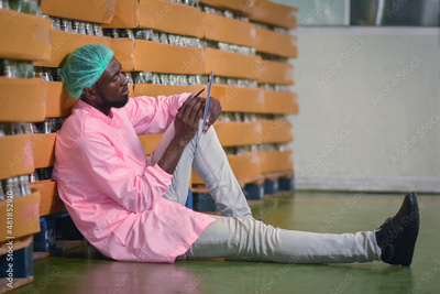 African American man worker work in Warehouse beverage checking products quality halal food standard, African American man worker Import export cargo