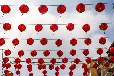 chinese red lanterns hanging on the street to celebrate chinese new year