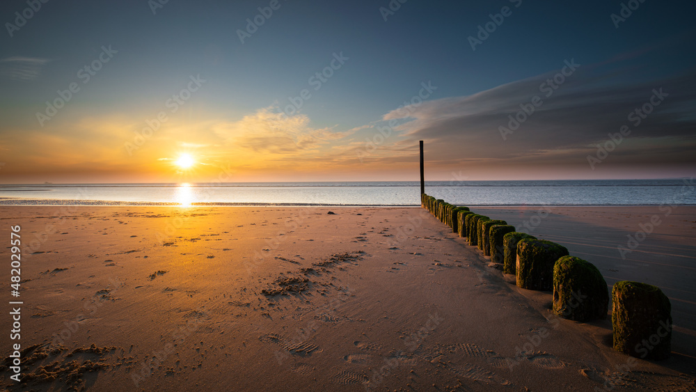 Beautiful sunset at the westerschelde sea at the dutch coast in zeeland, Nieuwvliet.