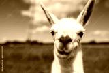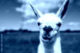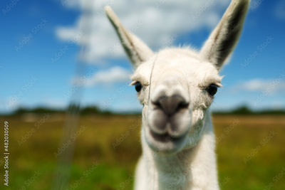 Portrait of a llama in a summer meadow.