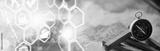 Travel and adventure search concept. Vintage aged map with a shabby book and compass. Shabby book and compass on the table.