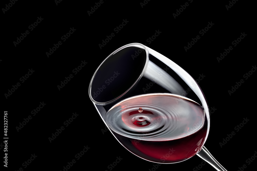 red wine drop falling in glass and created splash