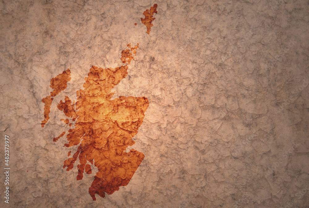 map of scotland on a old vintage crack paper background