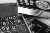 Close-up of a gold ingot on top of a troy ounce silver and palladium bar