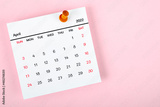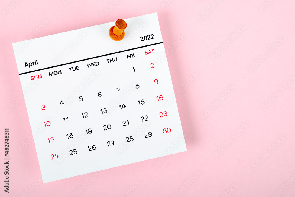 Calendar desk 2022 in April, The concept of planning and deadline with a push pin on the calendar date.