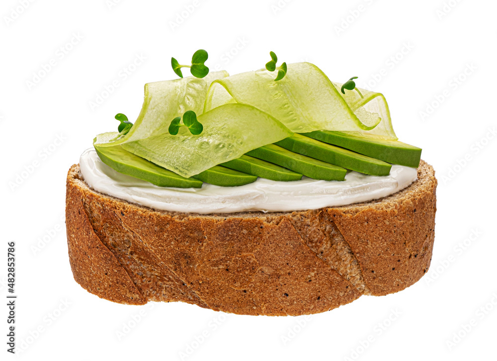 Vegetarian sandwich with cream cheese, avocado and cucumber