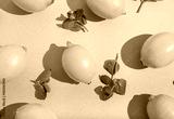Fresh yellow lemons with mint on minimal blue background on bright sun light with hard shadows pattern summer background flat lay from above, citrus food composition, space for text