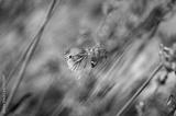 Jasny motyl bielinek siedzący na lawendzie rozmyte tło