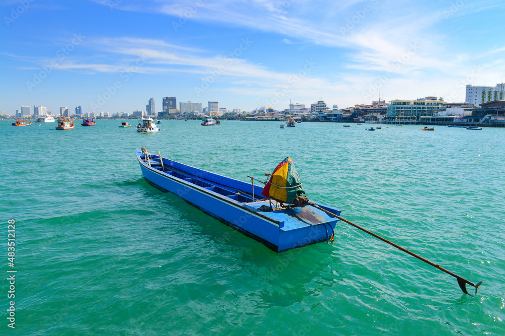 Beautiful beach with Fishing boat at at Pattaya Bay