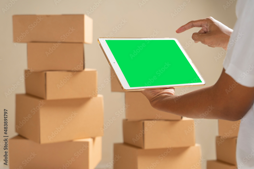 Man working with tablet for Online shopping at home. Online business at home concept, selective focus
