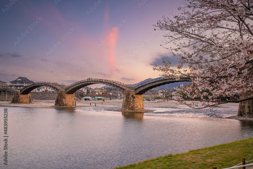 Cherry blossom at Kintaikyo bridge Iwakuni city, Japan