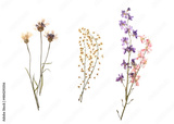 Dried pressed flowers on white background