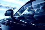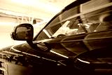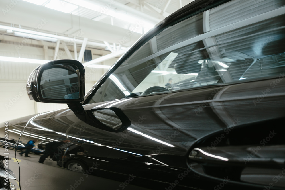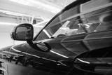 Driver's side mirror of a black car