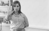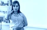 Woman with red hair gesturing stop with hand