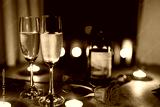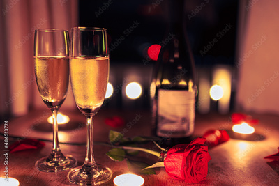 Lovely Valentines day background. Roses, Champagne and candle lights