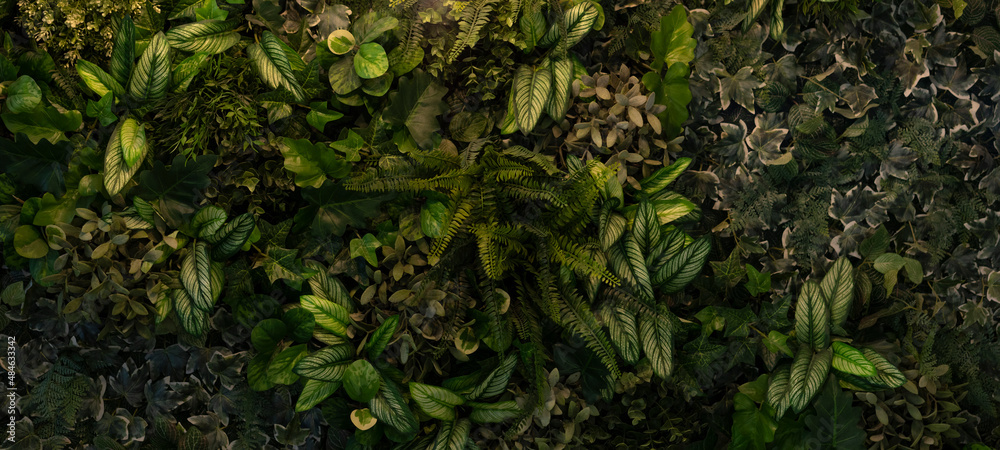 Creative nature green background, tropical leaf banner or floral jungle pattern concept.