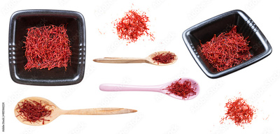 set of various crocus saffron threads isolated