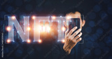 Businessman trading NFT non fungible token for crypto art in blockchain technology and disruptive monetization in collectibles market.Crypto Coins, NFT art collectors.NFT Metaverse