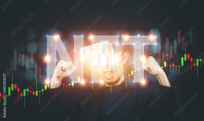 Businessman VR glasses Avatar on metaverse trading NFT non fungible token for crypto art in blockchain