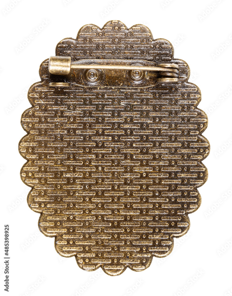 reverse side of bronze brooch with pin isolated