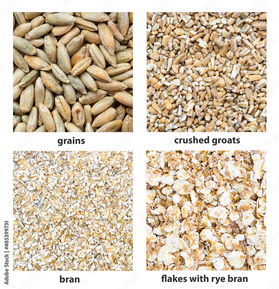background - various rye seeds with names